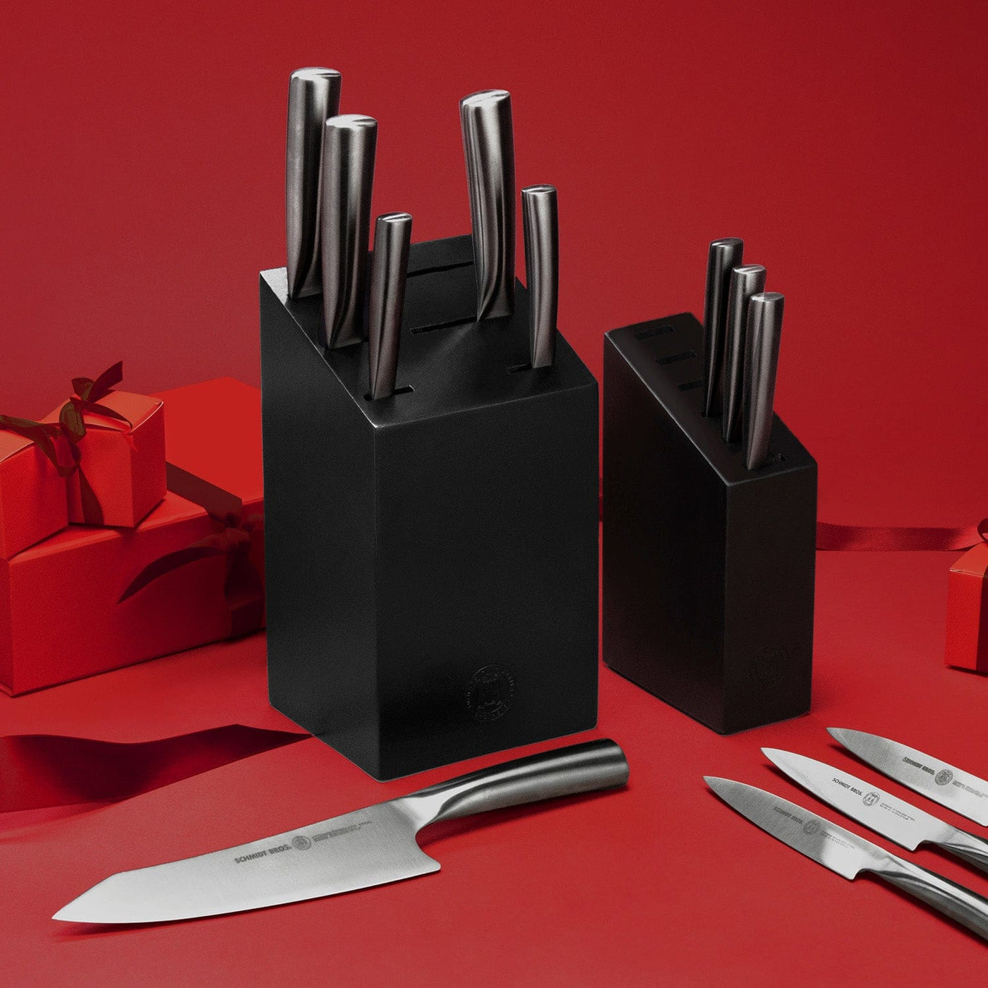 Premium knives don't need to come with premium attitude. With pure 100% German Stainless Steel, FSC certified woods, and universal storage blocks that will change your counter forever, no details are overlooked in our production.