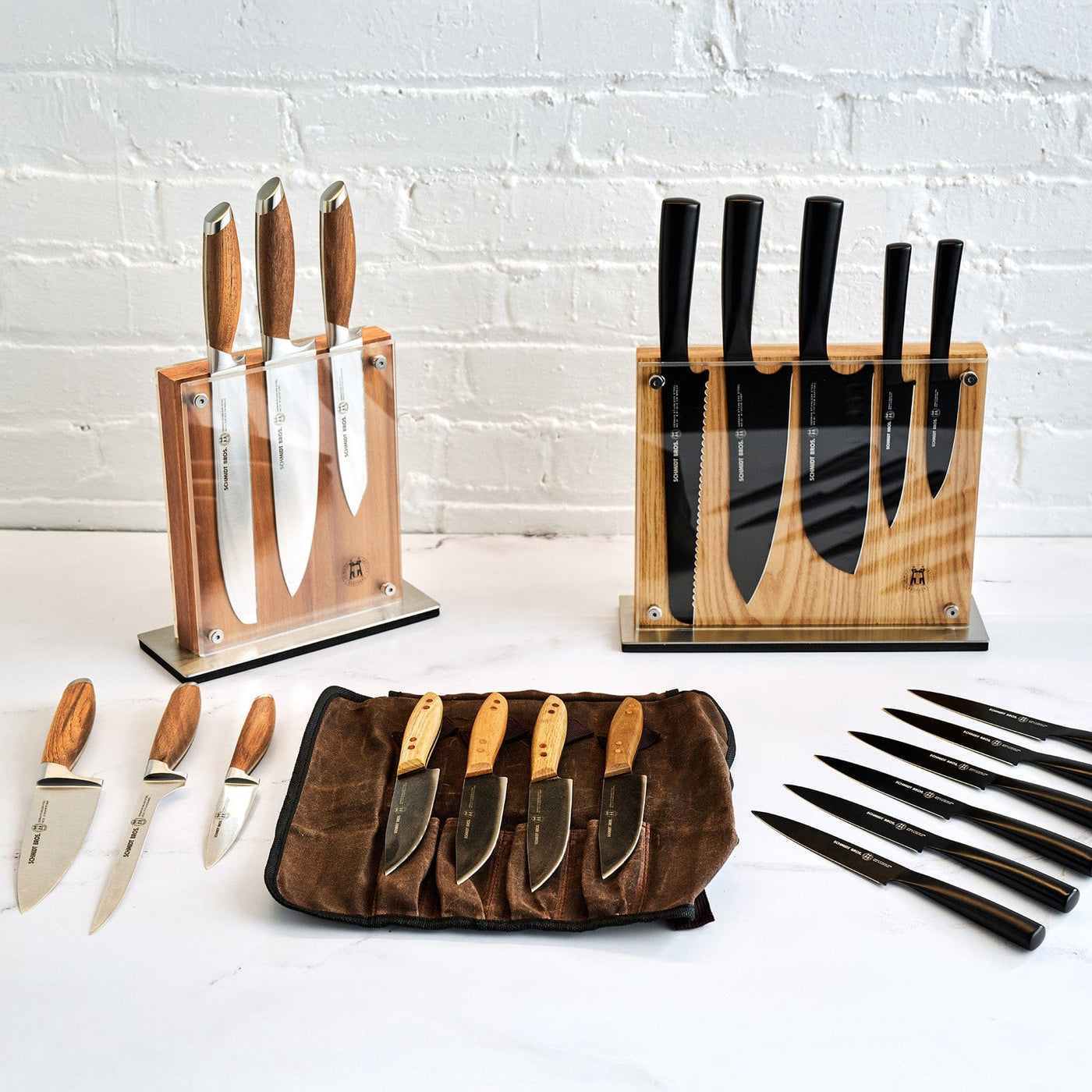 Premium knives don't need to come with premium attitude. With pure 100% German Stainless Steel, FSC certified woods, and universal storage blocks that will change your counter forever, no details are overlooked in our production.