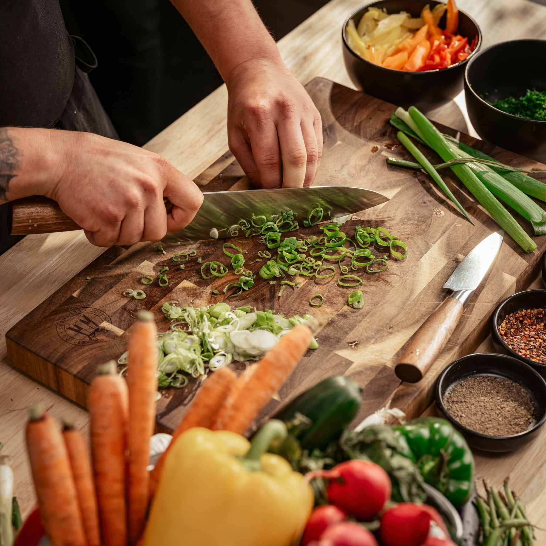 As knife makers, we care about what your blades touch (maybe a bit too much) and how they’re used. The softness of natural Acacia wood is blade-friendly, protecting your edges from getting dull like those pesky plastic cutting boards. Even better, the naturally antibacterial elements of Acacia wood make it durable and safe to use for preparing and serving food.