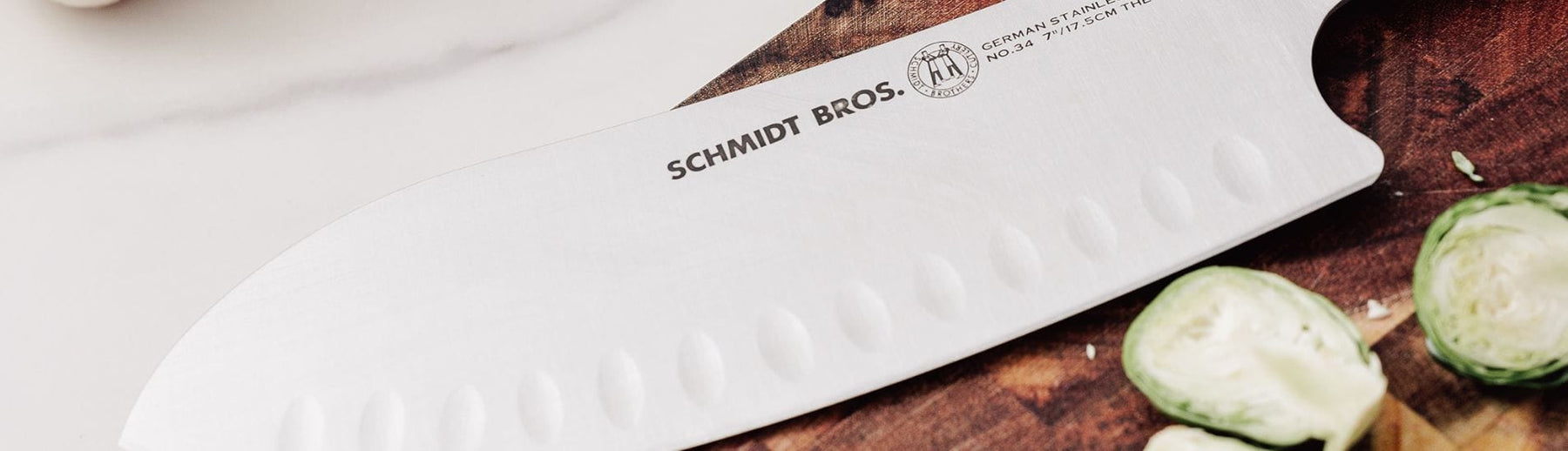 The Schmidt Bros. ‘One’ is a highly versatile knife that will instantly be your new go-to knife to conquer all kitchen tasks. Made with 100% German stainless steel, the ‘One’ is a hybrid, 3-in-1 knife is a multitasking marvel that seamlessly combines the precision of a chef's knife, the versatility of a Santoku knife, and the efficiency of a Mezzaluna knife, making it the ultimate all-in-one solution for a variety of kitchen tasks.