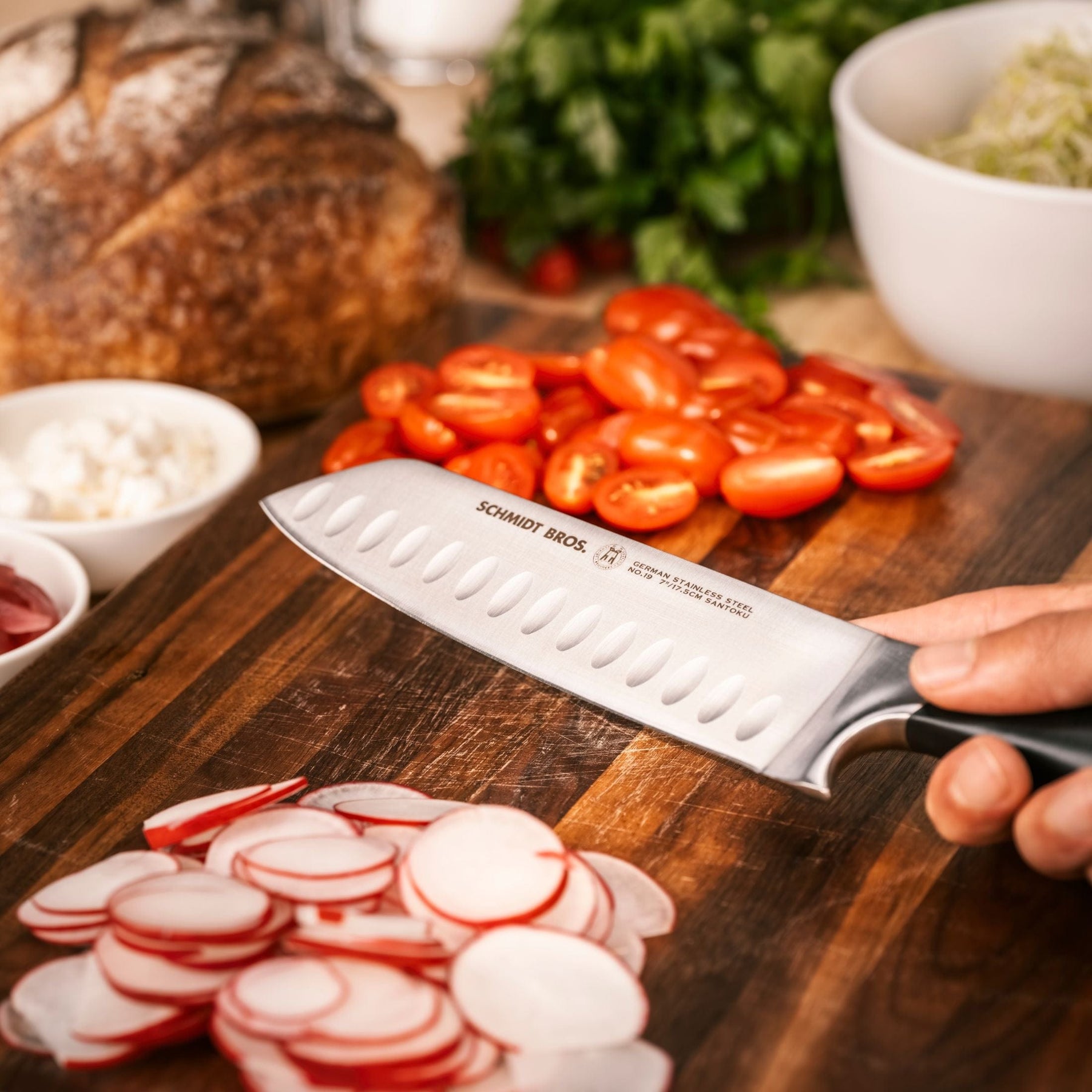 Slice. Dice. Chop. Mince. Cut fish and chicken. Look dang good. The world-class Heritage 7-inch Santoku— a superior design achievement for a superior do-most-everything cutting experience.