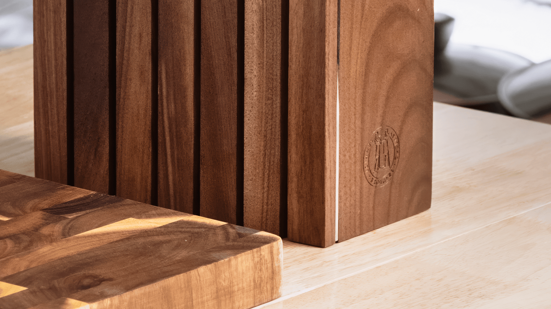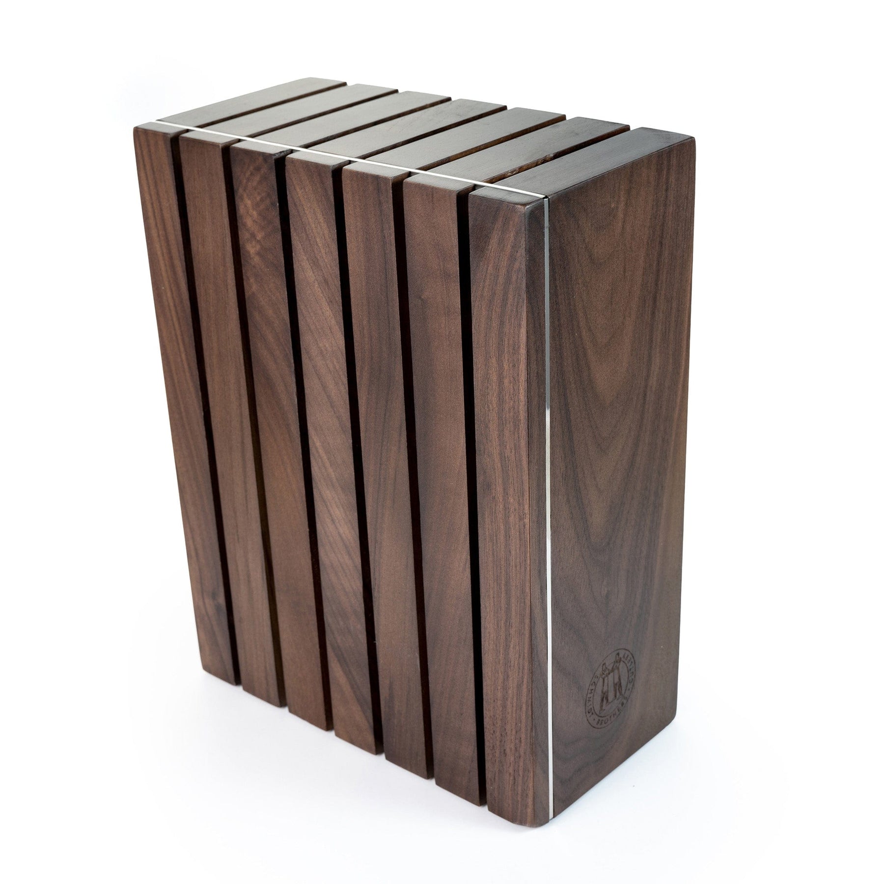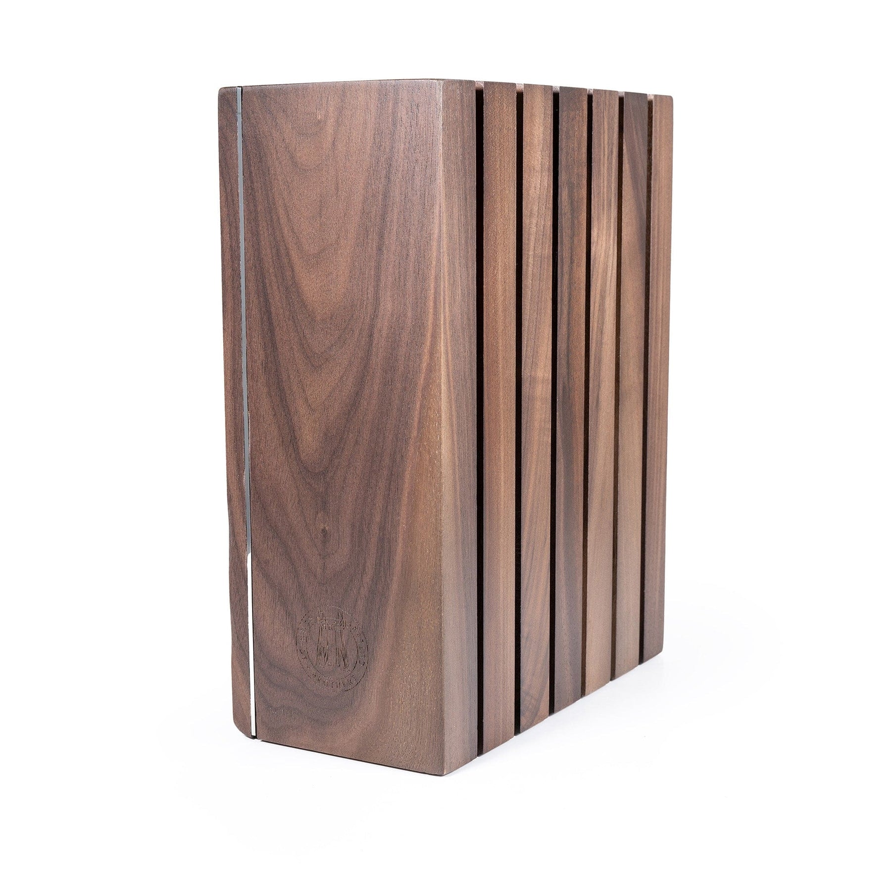 The Skyline Block is an innovative Acacia wood upright slotted block to protect and organize your knives while saving coveted counter space. The upright design creates a sleek, minimalist aesthetic, while the non-slip base ensures stability for safe and effortless access. With universal magnetic slots that fit knives of any size or shape, this block provides unmatched versatility and functionality.